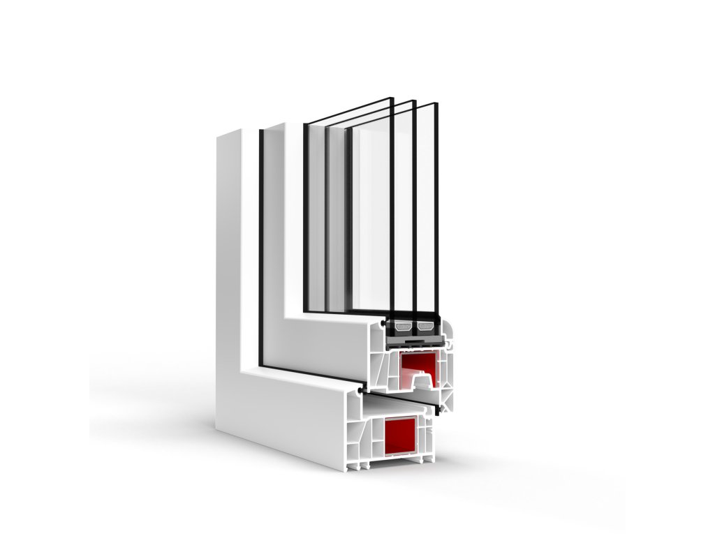 Plastové oknos trojsklem, rám 70mm - Profil okna: 5 komorový profil rámu a křídla vyrobený výhradně z prvotního materiálu ve třídě A, s hloubkou 70 mm, tloušťka do 40 mm. 3-sklo o parametrech Ug = 0,7 W/(m2K). Rám: Ve standardu pozinkovaný, ocelový rám. Kování: MACO MULTI MATIC KS se dvěma držáky proti vloupání ve standardu. Povlak Silver-Look a podélné zahloubení na zásuvce. Okno vybaveno blokádou proti špatnému zamknutí kliky, zvedákem křídla (u oken nad 90 cm) a mikro ventilací. Posílení: Posílení rámu - ocelové. Těsnění: Okno vybavené systémem trojitého těsnění: vnějšího, vnitřního s EPDM a centrálního ze zpěněného EPDM. Barevná škála: vnitřní/venkovní bílá/bílá, bílá/zlatý dub, bílá/antracit. Zvuková izolace: Rw= 34-44 dB v závislosti od použitých okenních komponentů. Tepelná izolace: Uw = 1,0 W/(m2K). Průvzdušnost: C4 Odolnost vůči vodě: 9A Odolnost vůči větru: C4 Certifikát: CENTRUM STAVEBNÍHO INŽENÝRSTVÍ a.s. č. CV – 16 – 415/Z