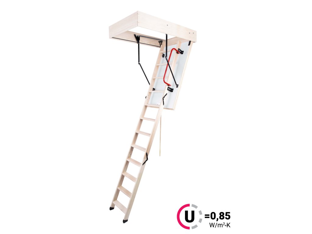 Dřevěné skládací půdní schody Oman Extra jsou dodávány včetně příslušenství a to za výhodnou cenu. Tyto skládací půdní schody slouží jako jednoduchý, praktický a zateplený výlez do půdních prostor. Schody Extra mají zateplené 46mm silné víko, které je z pohledové strany opatřeno bílou HDF deskou. Víko je zatepleno 40mm polystyrénem. Schody jsou vyráběny pro maximální výšku podlaží 280cm a mají 17 cm vysoký dřevěný rám. Schody mají 3-dílný dřevěný výlezový žebřík, nášlapy mají protiskluzovou úpravu. Jednotlivé díly výlezového žebříku jsou spojovány speciální ocelovou sponou. Maximální možné zatížení pro půdní schody Extra je 150 kg. Součástí balení je stahovací tyč, sada pružin pro snadné otevírání a zavírání schodů, zavírací mechanismus (zámek), ochranné stopky, madlo - schody tedy stačí rozbalit a namontovat. Půdní schody Extra jsou schody s plnou výbavou. Součinitel prostupnosti tepla U= 0,82W/m2*K.