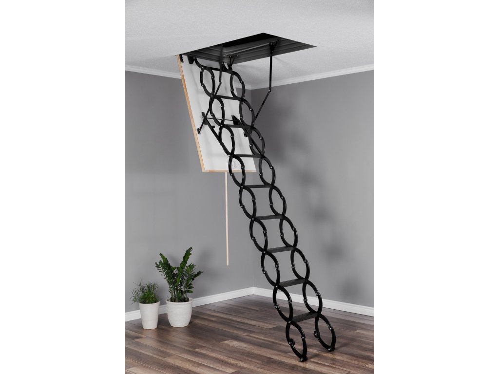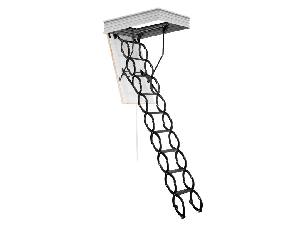 Půdní schody Oman Nůžkové Metal Box jsou schody, které se vyrábějí i pro ty nejmenší možné prostory. Oblíbený výlezový žebřík pro svou jednoduchou ovladatelnost. Díky nůžkovému výlezovému žebříku jde schody jednoduše roztáhnout pro výlez do půdních prostor a následně zatáhnout pro případ zavření schodů. Tyto stahovací půdní schody slouží jako jednoduchý, praktický a zateplený výlez do půdních prostor. Nůžkové schody mají dřevěné zateplené 26mm silné víko, které je z pohledové strany opatřeno bílou HDF deskou. Víko je zatepleno 20mm polystyrénem. Schody Nůžkové jsou vyráběny pro maximální výšku podlaží 290cm a mají 14,5 cm vysoký kovový rám. Schody mají celokovový výlezový žebřík s nášlapy s protiskluzovou úpravu. Maximální možné zatížení pro Nůžkové půdní schody je 150 kg. Součástí balení je stahovací tyč, sada pružin pro snadné otevírání a zavírání schodů a zavírací mechanismus (zámek) - schody tedy stačí rozbalit a namontovat. Skládací půdní schody Nůžkové jsou ideálním řešením půdního výlezu. Hodí se všude tam kde není kladen vysoký nárok na energetickou úspornost objektu. Součinitel prostupnosti tepla U=1,22W/m2*K.